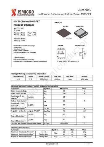 - Switching Speed : This is the time it takes for the MOSFET to switch between ON and OFF states. Faster switching speeds are desirable in many applications, and the 7410 MOSFET generally offers a good balance between speed and power consumption.