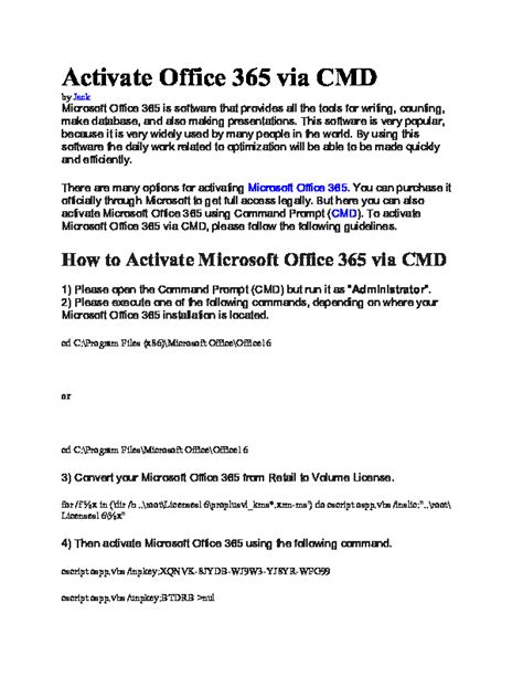 Exploring alternative activation methods broadens your toolkit and provides options when CMD might not be the most convenient or effective approach. Activating through your Microsoft account offers a seamless experience, especially if your subscription is already linked to your account. Simply signing in to an Office application and following the prompts can quickly activate your subscription without the need for command-line operations. Similarly, the activation wizard provides a user-friendly interface that guides you through the process, whether you’re using a product key or your Microsoft account. These methods are particularly useful for users who prefer a graphical interface or those who may not be comfortable with the command line. By understanding and utilizing these alternative activation methods, you can ensure a smooth and hassle-free experience, regardless of your technical expertise. Whether you choose to activate via CMD, your Microsoft account, or the activation wizard, the goal remains the same: to unlock the full potential of your Microsoft 365 subscription and enjoy the productivity tools it offers.