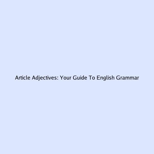 Article Adjectives: Your Guide to English Grammar