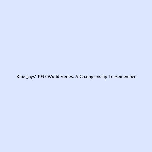 Blue Jays' 1993 World Series: A Championship To Remember