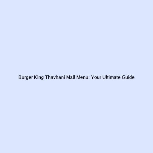 Burger King Thavhani Mall Menu: Your Ultimate Guide