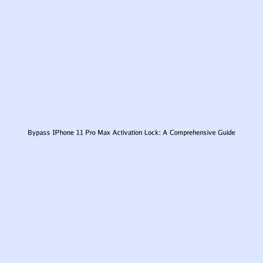 Bypass IPhone 11 Pro Max Activation Lock: A Comprehensive Guide