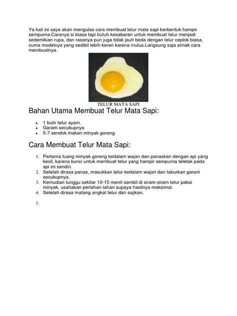 Siapa sih yang nggak suka telur mata sapi? Sarapan simpel yang bisa bikin nagih ini memang jadi favorit banyak orang. Tapi, kadang bikinnya suka zonk , kan? Entah kuningnya pecah, putihnya nggak matang merata, atau malah terlalu kering. Tenang, guys! Kali ini kita bakal kupas tuntas cara membuat telur mata sapi matang yang sempurna, anti gagal, dan pastinya bikin ngiler. Yuk, siapin teflon dan telur terbaikmu!