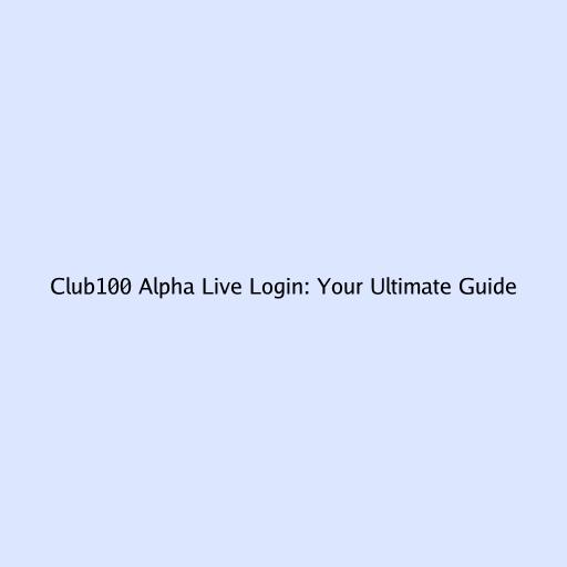 Club100 Alpha Live Login: Your Ultimate Guide
