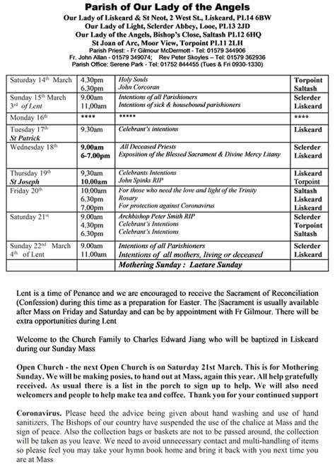 Finally, the newsletter will typically include important contact information for the parish priest, staff members, and key volunteers. You’ll also find details about the church’s address, phone number, email address, and website. This information is essential for getting in touch with the church office, asking questions, or seeking assistance. Additionally, the newsletter may provide links to diocesan resources, Catholic organizations, and other helpful websites. Having all this information in one place makes it easy to stay connected and access the support you need. It ensures that you can easily reach out to the church community whenever you have a question, concern, or need assistance.
