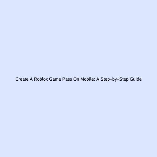 Create A Roblox Game Pass On Mobile: A Step-by-Step Guide
