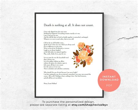 In conclusion, “Death Is Nothing At All” is a timeless poem that offers comfort and hope to those grieving the loss of a loved one. Its message of enduring love, continuity, and presence resonates deeply with readers, providing solace and inspiration during difficult times. Whether you are seeking comfort for yourself or for someone you know, this poem is a powerful reminder that death is not the end, and love never dies.