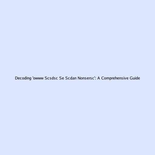 Decoding 'owww Scsdsc Se Scdan Nonsersc': A Comprehensive Guide