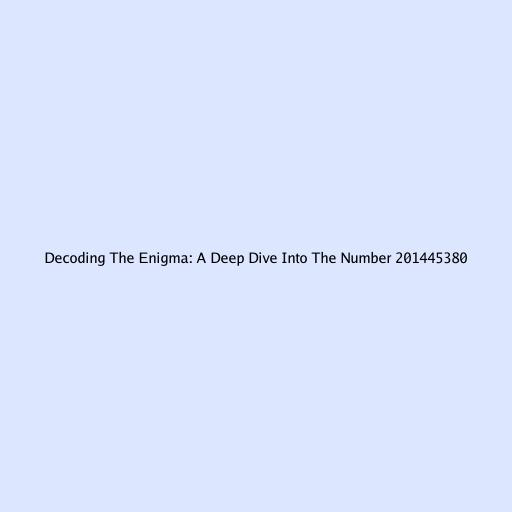 Decoding The Enigma: A Deep Dive Into The Number 201445380