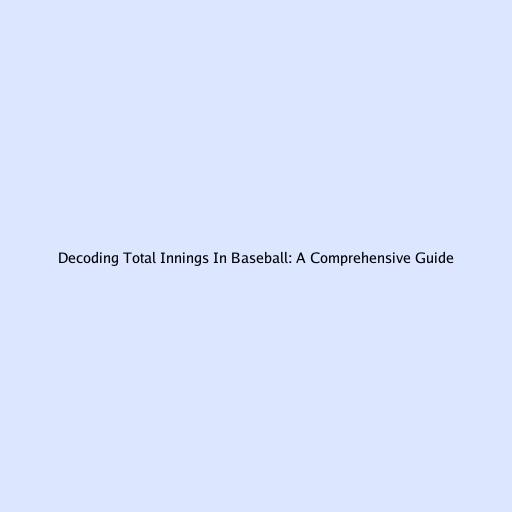 Decoding Total Innings in Baseball: A Comprehensive Guide