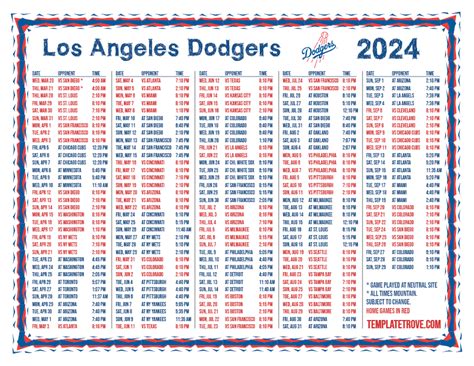 This is just a preliminary overview. For the complete and updated schedule, you should refer to the official sources like MLB.com or the Dodgers’ official website. The MLB schedule is subject to change, so it’s best to stay informed through official channels.