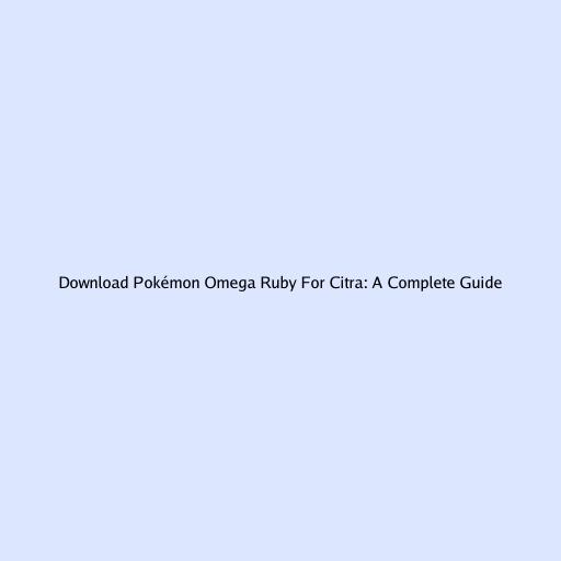 Pokémon Omega Ruby Download for Citra: A Complete Guide