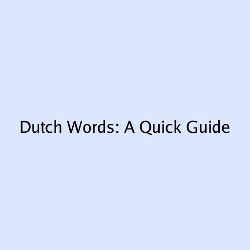 Dutch Words: A Quick Guide
