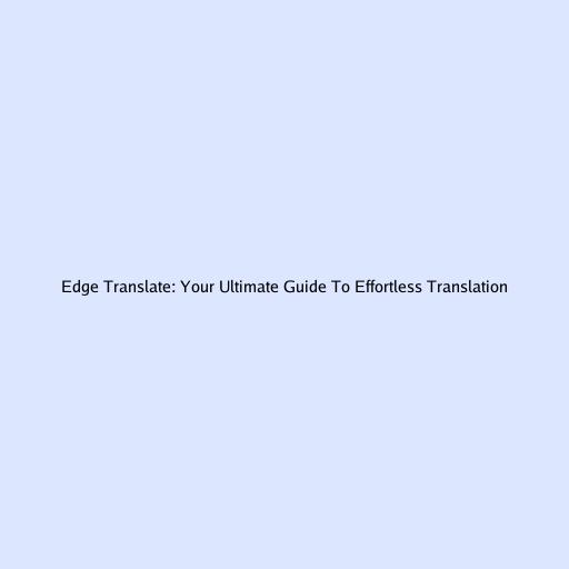 Edge Translate: Your Ultimate Guide to Effortless Translation