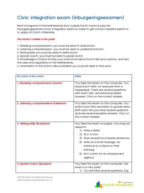 Before diving into practice, let’s get the lay of the land. The Facet Dutch exam is designed to assess your proficiency in Dutch across various skill areas. Knowing what to expect is half the battle, right?