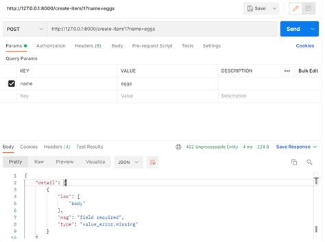 - Missing Required Fields: Your data models in FastAPI often define required fields. If you forget to include one of these in your request body, the server will give you a 422. It’s like leaving a required box on a form blank – the server can’t process it.
