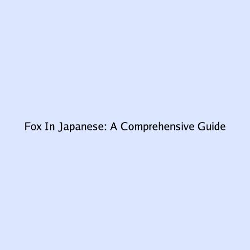 Fox in Japanese: A Comprehensive Guide
