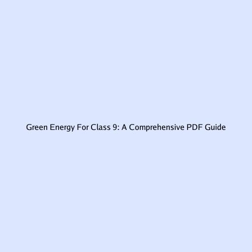 Green Energy for Class 9: A Comprehensive PDF Guide