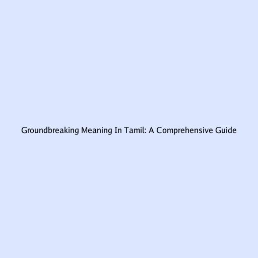 Groundbreaking Meaning in Tamil: A Comprehensive Guide