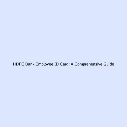 HDFC Bank Employee ID Card: A Comprehensive Guide