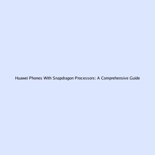 Huawei Phones with Snapdragon Processors: A Comprehensive Guide