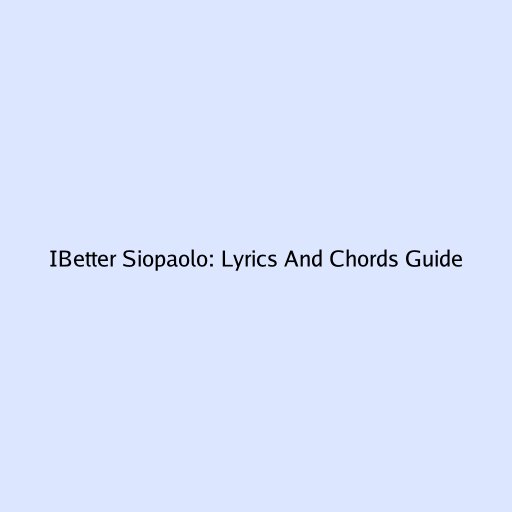 IBetter Siopaolo: Lyrics And Chords Guide