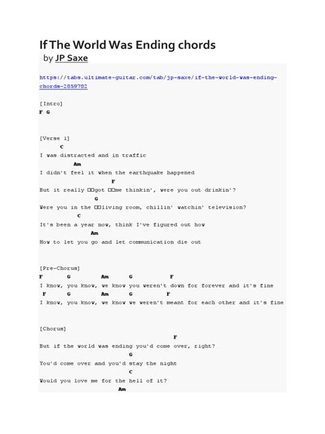 Hey guys! So, you want to learn how to play “If the World Was Ending” on guitar or ukulele? Awesome choice! This song is super popular, and for good reason. It’s got this beautiful, slightly melancholic vibe that’s perfect for a singalong. Plus, the chords are actually pretty beginner-friendly , which is always a bonus, right? Today, we’re gonna break down exactly how to play this gem. We’ll go through the main chords you’ll need, show you the strumming pattern, and give you some tips to make it sound amazing. By the end of this, you’ll be strumming along like a pro, impressing your friends or just enjoying yourself. Learning a new song can be so rewarding, and this one is definitely a crowd-pleaser. We’ll keep it casual and fun, so don’t stress if you’re new to this. We’ve all been there, fumbling with those strings! So grab your instrument, get comfy, and let’s dive into the wonderful world of “If the World Was Ending” chords . You’ve got this!