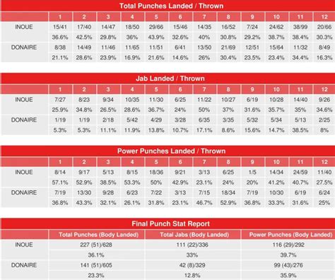 Furthermore, the compubox stats can help dispel common misconceptions or biases that might arise from simply watching the fight. Sometimes, a fighter who appears to be dominating might actually be getting out-landed, or a fighter who seems to be on the defensive might be effectively countering and landing a higher percentage of their shots. By consulting the numbers, we can get a more objective assessment of who was truly in control of the fight. In the case of Inoue vs. Donaire , the stats can help us understand how Inoue managed to overcome Donaire’s experience and power, or how Donaire was able to push Inoue to his limits despite being the underdog. Ultimately, the compubox stats serve as a valuable tool for both casual fans and hardcore boxing enthusiasts alike, providing a deeper and more informed perspective on the sweet science.
