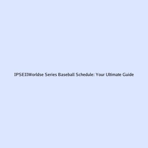 IPSEIIWorldse Series Baseball Schedule: Your Ultimate Guide