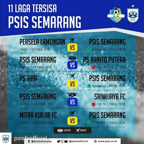 Oke, guys, sekarang pertanyaannya, gimana sih cara paling gampang buat dapetin info jadwal PSIS Semarang main lagi ? Tenang, zaman sekarang udah serba digital, jadi nyari info itu gampang banget. Pertama dan paling utama, kalian wajib follow akun-akun resmi PSIS Semarang. Biasanya, mereka punya akun Instagram, Twitter, dan Facebook yang aktif banget. Di sana, mereka bakal ngumumin jadwal pertandingan, perubahan jam, lokasi, bahkan kadang ada info tiket juga. Jadi, pastikan notifikasi kalian nyala biar nggak ketinggalan update terbaru. Selain akun resmi, website berita olahraga terkemuka di Indonesia juga jadi sumber informasi yang reliable . Situs-situs seperti Bola.com , Liputan6 SCTV , atau ESPN Indonesia biasanya punya rubrik khusus jadwal pertandingan liga, termasuk PSIS Semarang. Kalian tinggal cari aja bagian jadwal liga 1, terus filter PSIS Semarang. Gampang, kan?