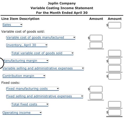 Hey guys, let’s dive into the world of variable costing and create an income statement for Joplin Company for the month ended April 30. You know, sometimes absorption costing can feel a bit… well, absorbing all those fixed costs! Variable costing, on the other hand, gives us a much clearer picture of how our sales revenue directly impacts our contribution margin. It’s all about separating the variable costs from the fixed ones, which is super helpful for decision-making, especially when we’re thinking about pricing or analyzing profitability on a per-unit basis.