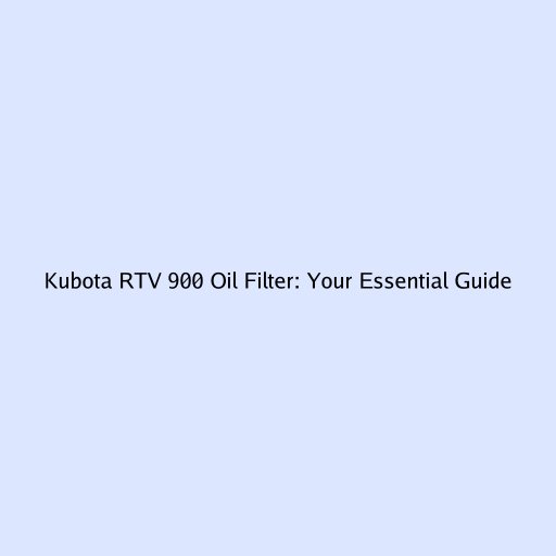 Kubota RTV 900 Oil Filter: Your Essential Guide