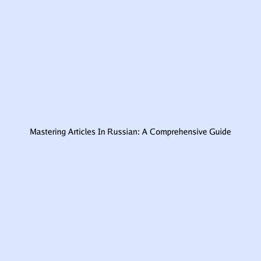 Mastering Articles In Russian: A Comprehensive Guide