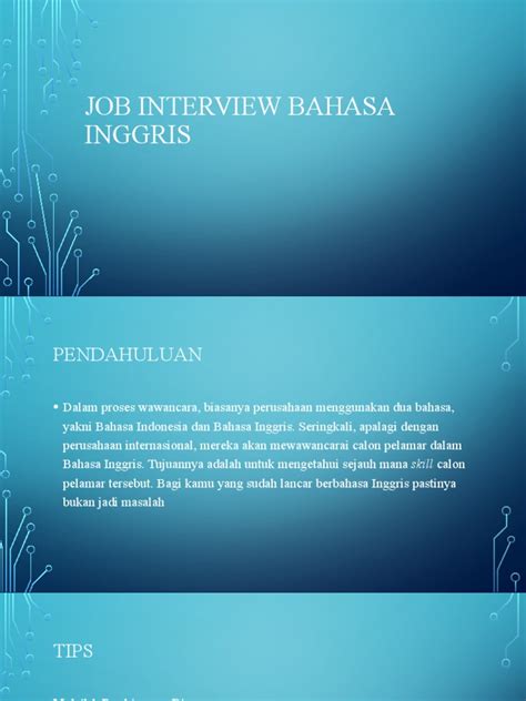 Alright, guys, you've prepared your answers, you're feeling good about your Bahasa Indonesia. Now, let's talk about the crucial elements that will make your interview shine. First off, *research is key*. Seriously, before you even step into that virtual or physical interview room, immerse yourself in the company. Understand their values, their recent achievements, their mission. Knowing this will allow you to tailor your responses and ask relevant questions, showing you're genuinely invested. When you can weave in specific details about the company into your answers in Bahasa Indonesia, it shows you've done your homework and you're not just giving generic responses. For example, if they recently launched a new product, you could say, ' Saya sangat terkesan dengan peluncuran produk [nama produk] Anda baru-baru ini dan bagaimana hal itu mengatasi [masalah spesifik]. ' (I was very impressed with your recent launch of the [product name] and how it addresses [specific problem].) Next, *practice, practice, practice*! Don't just think about your answers; say them out loud. Record yourself, practice with a friend, or even just in front of a mirror. This helps you refine your pronunciation, improve your fluency, and boost your confidence. The more you hear yourself speak Bahasa Indonesia, the more natural it will feel. Pay attention to your body language too. Maintain eye contact, offer a firm handshake (if in person), and sit up straight. Even if you're a bit nervous, projecting confidence can make a huge difference. Remember, they want to see you as a person, not just a list of qualifications. Another super important tip is to *listen attentively*. Don't just wait for your turn to speak. Truly listen to the interviewer's questions. If you're unsure about something, it's perfectly okay to ask for clarification. Saying ' Maaf, bisakah Anda mengulang pertanyaan itu? ' (Sorry, could you repeat the question?) or ' Apakah Anda bisa menjelaskan lebih lanjut? ' (Could you explain further?) shows you're engaged and want to provide the best possible answer. Also, be prepared to ask *thoughtful questions* at the end. This is your chance to show your curiosity and initiative. Questions like, ' Bagaimana budaya kerja di tim ini? ' (What is the work culture like in this team?) or ' Apa saja tantangan terbesar yang dihadapi tim saat ini? ' (What are the biggest challenges the team is currently facing?) can lead to insightful discussions. Finally, *follow up*! Send a thank-you email within 24 hours, reiterating your interest and briefly mentioning something specific you discussed. This reinforces your professionalism and keeps you top-of-mind. A simple ' Terima kasih atas waktu Anda hari ini. Saya sangat menikmati percakapan kita tentang [topik spesifik] dan tetap antusias tentang kesempatan ini. ' (Thank you for your time today. I really enjoyed our conversation about [specific topic] and remain enthusiastic about this opportunity.) can go a long way. By combining solid preparation with confident delivery and thoughtful follow-up, you'll significantly increase your chances of success in your Bahasa Indonesia job interview.