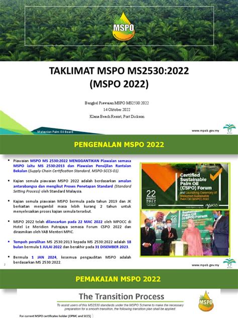 Hey everyone, let’s dive into the MSPO Briefing 2022 ! If you’re involved in the palm oil industry, or even just curious about sustainable sourcing, this is a must-read. The Malaysian Sustainable Palm Oil (MSPO) certification is a big deal, and the 2022 briefing brought some crucial updates and insights that everyone needs to get up to speed on. We’re going to break down what this means for you, why it matters, and how to navigate the evolving landscape of sustainable palm oil production. So, grab a coffee, get comfy, and let’s unpack this important topic together. We’ll be covering the latest standards, challenges, and opportunities that shaped the industry in 2022 and looking ahead to what’s next. It’s all about ensuring our palm oil practices are not just productive, but also environmentally responsible and socially conscious. This isn’t just about compliance; it’s about building a more sustainable future for everyone involved, from the farmers on the ground to the consumers at the supermarket.