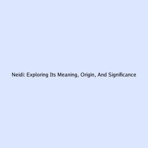 Neidi: Exploring Its Meaning, Origin, And Significance