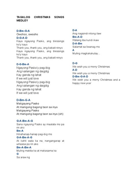 Creating a nonstop Tagalog Christmas songs medley requires careful planning and a bit of musical creativity. The goal is to create a seamless listening experience that keeps the festive spirit alive without any interruptions. Start by selecting a diverse range of songs that capture different moods and aspects of the Christmas season. Include upbeat, joyful songs like “ Ang Pasko ay Sumapit ” to get everyone in a celebratory mood, as well as more sentimental tunes like “ Pasko Na Sinta Ko ” to add a touch of nostalgia. Pay attention to the tempo and key of each song to ensure smooth transitions between them. You might want to group songs with similar tempos together to avoid jarring changes in pace. Consider using musical interludes or instrumental bridges to connect the songs and create a sense of continuity. These interludes can be short instrumental versions of popular Christmas carols or original compositions that complement the overall mood of the medley. Think about the arrangement of the songs and how they flow together to tell a story or create a particular emotional journey. You might want to start with more traditional carols and gradually introduce more contemporary hits to keep the medley fresh and engaging. Finally, test out your medley on friends and family to get feedback and make any necessary adjustments. Their reactions can help you fine-tune the medley to ensure it’s a crowd-pleaser that everyone will enjoy. With careful planning and attention to detail, you can create a nonstop Tagalog Christmas songs medley that will be the highlight of your holiday celebrations.