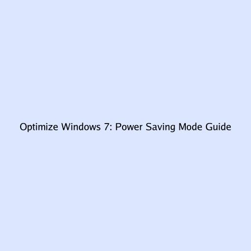Optimize Windows 7: Power Saving Mode Guide