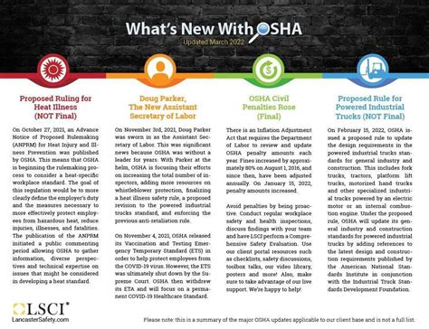 In 2022, OSHA continued to play a crucial role in safeguarding workers. They focused on several key areas, including COVID-19 related guidance, enforcement of existing standards, and outreach and training programs. Due to the ongoing pandemic, OSHA issued and updated guidance to help employers protect their employees from the virus. This included recommendations on masking, social distancing, and other safety measures. Furthermore, OSHA continued its regular enforcement activities, conducting inspections and investigations to ensure compliance with its standards. They prioritized high-hazard industries and focused on preventing serious injuries and fatalities. OSHA also provided various training and educational resources to help employers and employees understand and comply with safety regulations. These resources included online training modules, webinars, and on-site consultations. The agency also continued its partnership programs, working with employers and industry groups to promote safety best practices and reduce workplace hazards. In 2022, OSHA was particularly active in certain industries, such as construction, manufacturing, and healthcare. These industries were identified as high-hazard due to the inherent risks involved in their operations. OSHA conducted targeted inspections and investigations in these areas, focusing on preventing common hazards and ensuring compliance with safety standards. The agency also launched several new initiatives aimed at improving worker safety, including programs to address specific hazards, such as heat stress, falls, and musculoskeletal disorders. These initiatives were designed to provide targeted assistance and guidance to employers and employees in high-risk industries.