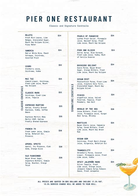 One of the standout dishes is the grilled lobster, which is cooked to perfection and served with a flavorful garlic butter sauce. The conch chowder is another must-try, a creamy and comforting soup that is packed with flavor. And for those who prefer something other than seafood, the jerk chicken is a delicious option, marinated in a blend of spices and grilled to a smoky perfection. Of course, no meal at Pier One would be complete without trying one of their signature cocktails. From tropical fruit punches to classic rum drinks, the bartenders are experts at creating refreshing and flavorful concoctions that perfectly complement the food and the ambiance. And for those who prefer wine, the restaurant has an extensive wine list that features both local and international varieties. Whether you’re celebrating a special occasion or simply enjoying a night out, the menu at Pier One is sure to impress.