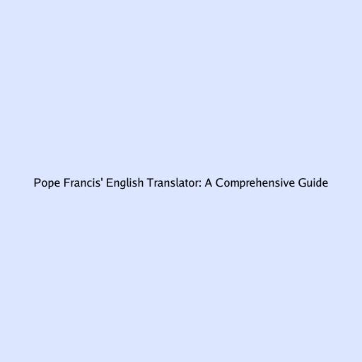 Pope Francis’ English Translator: A Comprehensive Guide