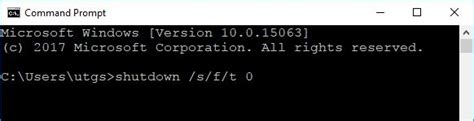 /t 0sets the timeout to 0 seconds, meaning the shutdown will happen immediately.