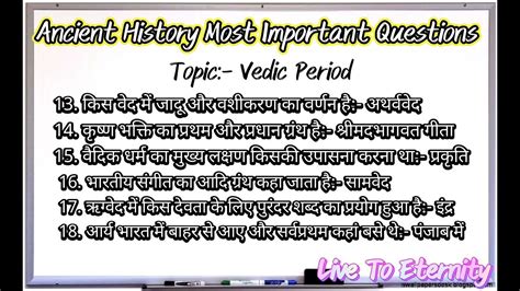 Geography: While not always the focus, knowing the approximate geographical areas associated with the Vedic people, especially the Sapta Sindhu region (land of seven rivers) in the early period and the Gangetic plain in the later period, can sometimes be useful.