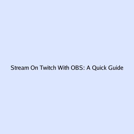 Stream On Twitch With OBS: A Quick Guide