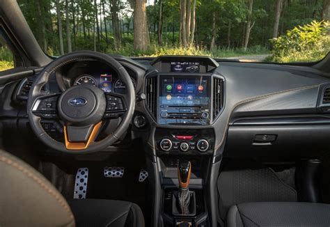 Step inside the 2024 Subaru Forester , and you’ll find a well-designed interior that prioritizes both comfort and functionality. The cabin is spacious, with plenty of headroom and legroom for both front and rear passengers. The seats are supportive and comfortable, making long drives a breeze. Subaru has also paid attention to the quality of materials, using durable and attractive fabrics and finishes throughout the interior. You’ll appreciate the attention to detail, from the soft-touch surfaces to the intuitive layout of the controls. The Forester offers a generous amount of cargo space, with plenty of room for luggage, groceries, or outdoor gear. The rear seats can be easily folded down to create even more cargo capacity. This makes the Forester a versatile vehicle that can handle a wide range of needs. In terms of technology, the 2024 Forester comes equipped with a user-friendly infotainment system. The system features a large touchscreen display, which you can use to access navigation, audio, and other vehicle settings. Subaru has also incorporated Apple CarPlay and Android Auto compatibility, allowing you to seamlessly integrate your smartphone with the car’s system. This allows you to access your favorite apps, make calls, and send texts hands-free. The Forester also offers a suite of advanced driver-assist features, including adaptive cruise control, lane departure warning, and pre-collision braking. These features help to enhance safety and provide added peace of mind on the road. The Forester offers a variety of trim levels, each with its own set of features and amenities. The base model offers a solid foundation, while higher trim levels add more premium features like leather upholstery, a premium sound system, and a power liftgate. You can choose the trim level that best suits your needs and budget. The interior of the 2024 Subaru Forester is designed to provide a comfortable, practical, and technologically advanced experience. It’s a vehicle that is well-suited for families, commuters, and anyone who values comfort and convenience.