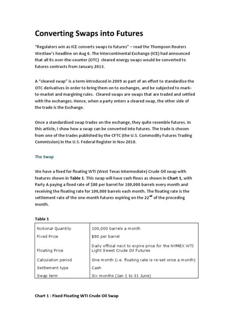 Let’s get into the nuts and bolts of a swap future contract. Understanding its components is key to seeing how it all works. Think of it like understanding the ingredients in a recipe before you can bake the cake, right? Each swap future contract has several critical elements that define it. First off, you have the underlying asset . This isn’t a stock or a commodity; it’s an interest rate swap itself. More specifically, it typically refers to a standardized interest rate swap with a specific maturity date and a set of cash flows. For example, a common underlying might be a 3-month LIBOR vs. fixed-rate swap. Next, we have the contract size . This specifies the notional principal amount of the underlying swap that one futures contract represents. It’s usually a very large sum, reflecting the substantial amounts involved in the underlying swaps. Then there’s the expiration date or delivery date. This is the date on which the futures contract expires and the underlying swap would theoretically be exchanged or cash-settled. Most swap futures are cash-settled, meaning that instead of physically delivering the swap, the parties exchange the difference between the contract price and the market price of the underlying swap at expiration. Another crucial element is the tick size and value . The tick size is the minimum price fluctuation allowed for the contract, and the tick value is the monetary gain or loss for one tick movement. This is how traders track their profits and losses. Finally, margin requirements are essential. Because these are leveraged instruments, traders don’t pay the full contract value upfront. Instead, they are required to post a margin, a good-faith deposit, to cover potential losses. The exchange sets these margin levels. Understanding these components helps you see that a swap future is not just a random bet; it’s a precisely defined agreement tied to the value of an underlying swap, with clear rules for trading and settlement. It’s this structure that allows for active trading and risk management.