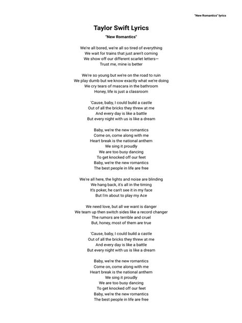 Taylor Swift’s command of language is nothing short of phenomenal . For anyone who’s ever been captivated by her music, it’s the lyrics that often serve as the initial hook, drawing you into her world. Her ability to craft narratives that are both deeply personal and universally relatable is a rare gift. When you listen to Taylor Swift new song lyrics , you’re not just hearing words; you’re experiencing vivid snapshots of life, love, and everything in between. She’s like a modern-day poet, using her songs as a canvas to explore complex emotions and intricate stories. Think about the sheer brilliance of her metaphors and similes – they’re not just clever; they’re often breathtakingly original and perfectly encapsulate the feeling she’s trying to convey. Remember the iconic line, “You like the bad girl and that bad girl likes you”? Or the evocative imagery of “ashes on the ground, the“. It’s this masterful use of language that elevates her songs beyond simple pop tunes into something much more profound. The way she can turn a seemingly ordinary moment into something cinematic and unforgettable is truly her superpower. Each album release feels like a new masterclass in storytelling, with fans eagerly dissecting the new song lyrics to uncover hidden meanings, decipher references, and connect with the emotional core of the track. Her wordplay isn’t just for show; it’s the engine that drives the narrative, allowing listeners to immerse themselves in the song’s world. Whether she’s chronicling the giddy highs of a new romance, the stinging pain of betrayal, or the quiet strength found in self-discovery, Taylor’s lyrics are always the guiding light. The impact of her wordplay extends beyond just fan appreciation; it has cemented her reputation as one of the most significant songwriters of her generation, inspiring countless aspiring musicians and demonstrating the power of storytelling in music . It’s this lyrical dexterity, this unwavering commitment to crafting meaningful narratives, that keeps her music relevant and continually pushes the boundaries of what pop music can be. Every new release is a testament to her evolving artistry, and the anticipation for Taylor Swift new song lyrics never wanes because we know we’re in for a lyrical journey that will resonate long after the music stops.