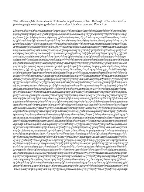 Hey guys! Ever heard of a word so long it could probably wrap around your house? Well, buckle up because we’re diving deep into the fascinating world of titin , a protein whose full chemical name boasts a staggering 189,819 letters! Yes, you read that right. This isn’t a typo; it’s a genuine, ridiculously long word that exists in the realm of biochemistry. In this article, we’re going to break down why this word is so long, what titin actually does, and how anyone could possibly pronounce (or even write) such a monstrous term. Get ready for a wild ride through the world of molecular biology!