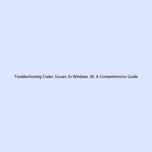 Troubleshooting Codec Issues in Windows 10: A Comprehensive Guide