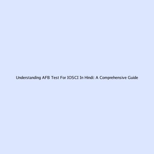 Understanding AFB Test For IOSCI In Hindi: A Comprehensive Guide